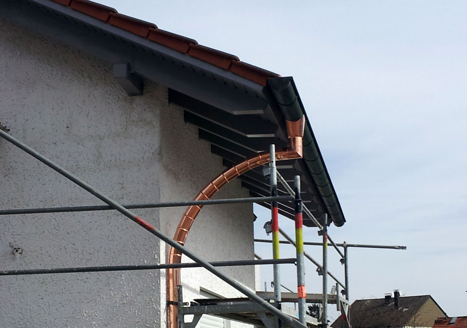 Zu unserem Service zählt auch die Anbringung und Reparatur von Zinkdachrinnen, Kupferrinnen, Fallrohren, Traufblechen usw. an Steil- und Flachdächer.