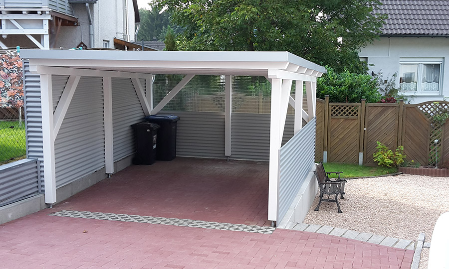 Als Alternative zur Garage bietet er noch einen weiteren Vorteil: Durch die offene Bauweise kann die Luft besser zirkulieren und somit die Feuchtigkeit schneller abziehen. Der Wagen trocknet schneller ab und die Gefahr, dass das untergestellte Fahrzeug rostet, sinkt.