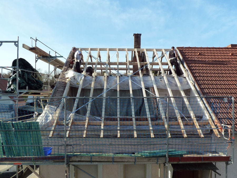 Zu unserem Leistungsangebot zählen der Neubau, Anbau und die Sanierung von Dachkonstruktionen (Satteldach, Pfettendach, Walmdach usw.) sowie der Bau von Dachgauben.