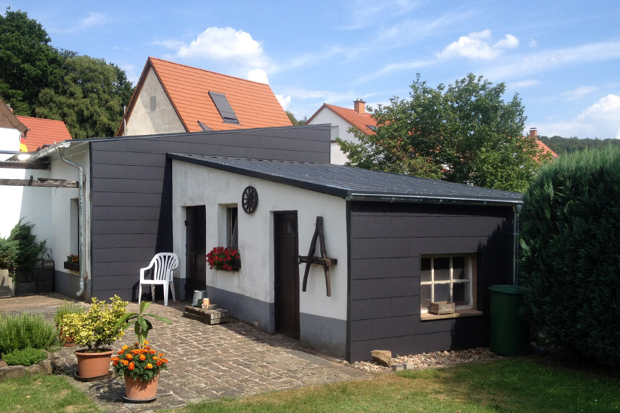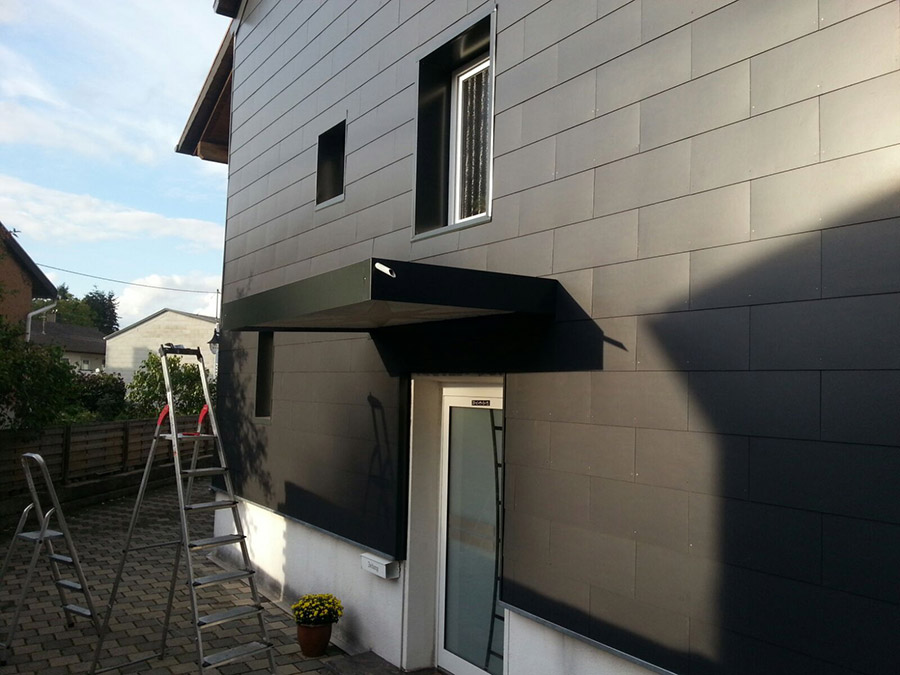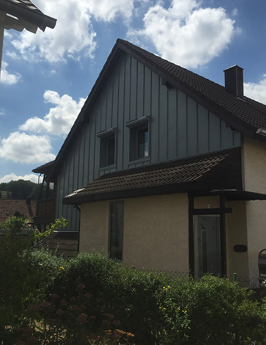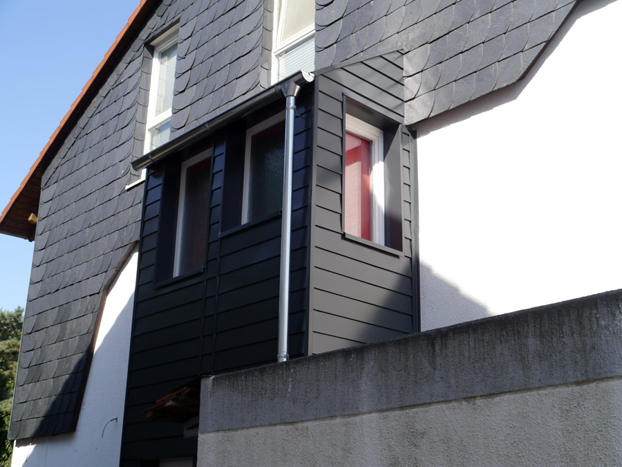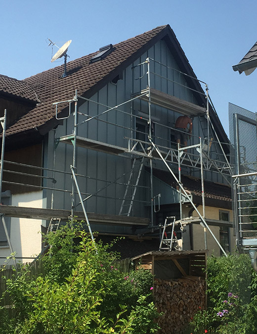 Wir verkleiden Ihr Haus oder Ihren Giebel mit witterungsbeständigen Materialien (z. B. Naturschiefer, Holz, Fassadenplatten, Zink- oder Aluminiumverkleidungen). Außenwanddämmung nach ENEV zählt ebenfalls zu unserem Leistungsangebot.